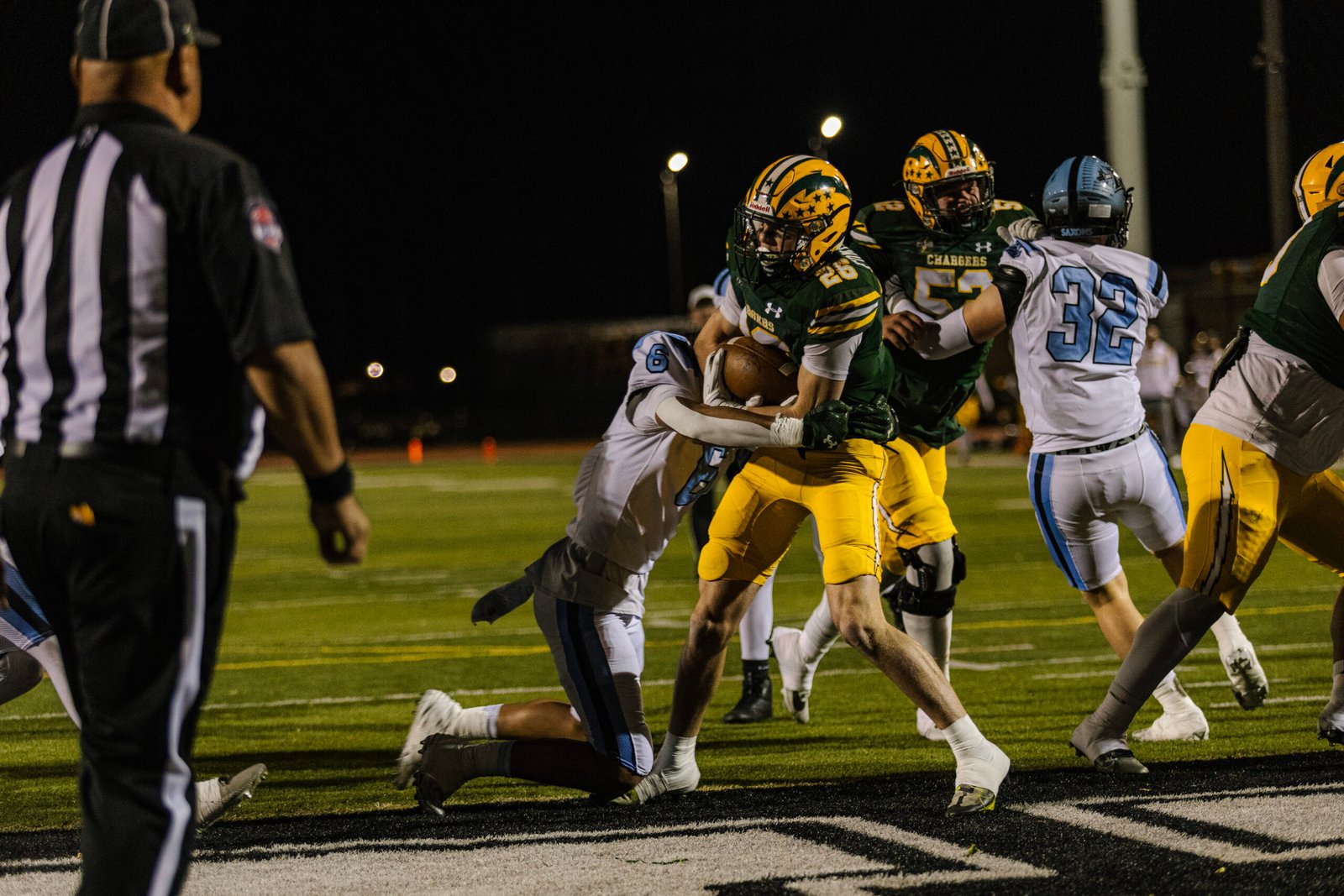 Despite North Torrance averaging 31 points per game all season, Edison’s defense was on top and made sure to put them in their place. Carson Schmidt would have an interception in the second half. When the Saxons were in the red zone, Jake Minter and Jacon Martin would make sure that they remained scoreless. Edison had shut out North Torrance, with the final score being 24-0.